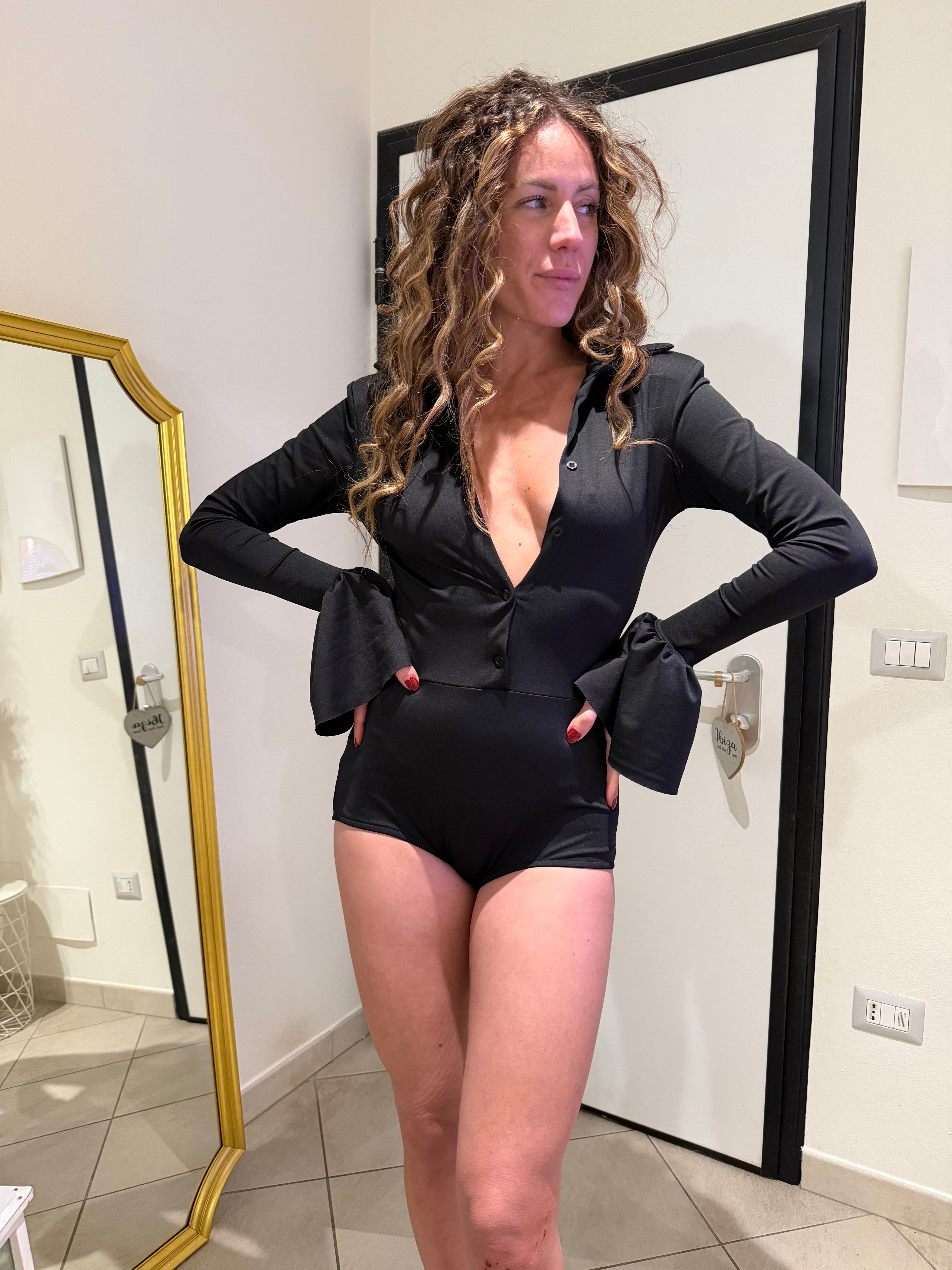 Body nero in paillettes
